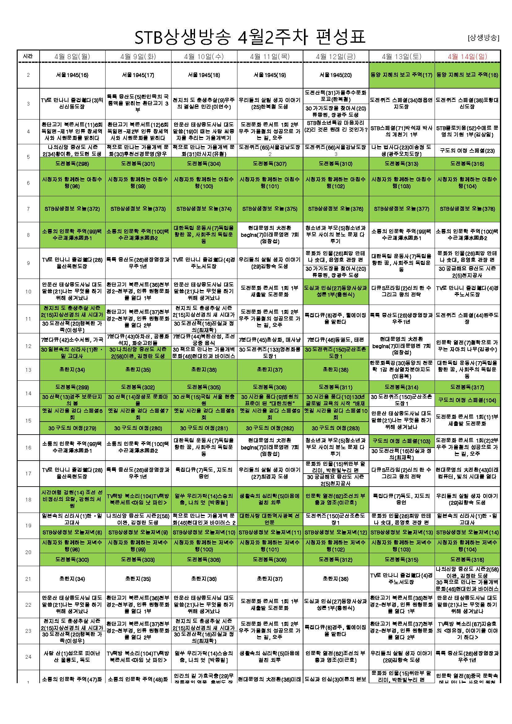 STB상생방송 4월2주차 편성표-TV로 만나니 즐겁道다.