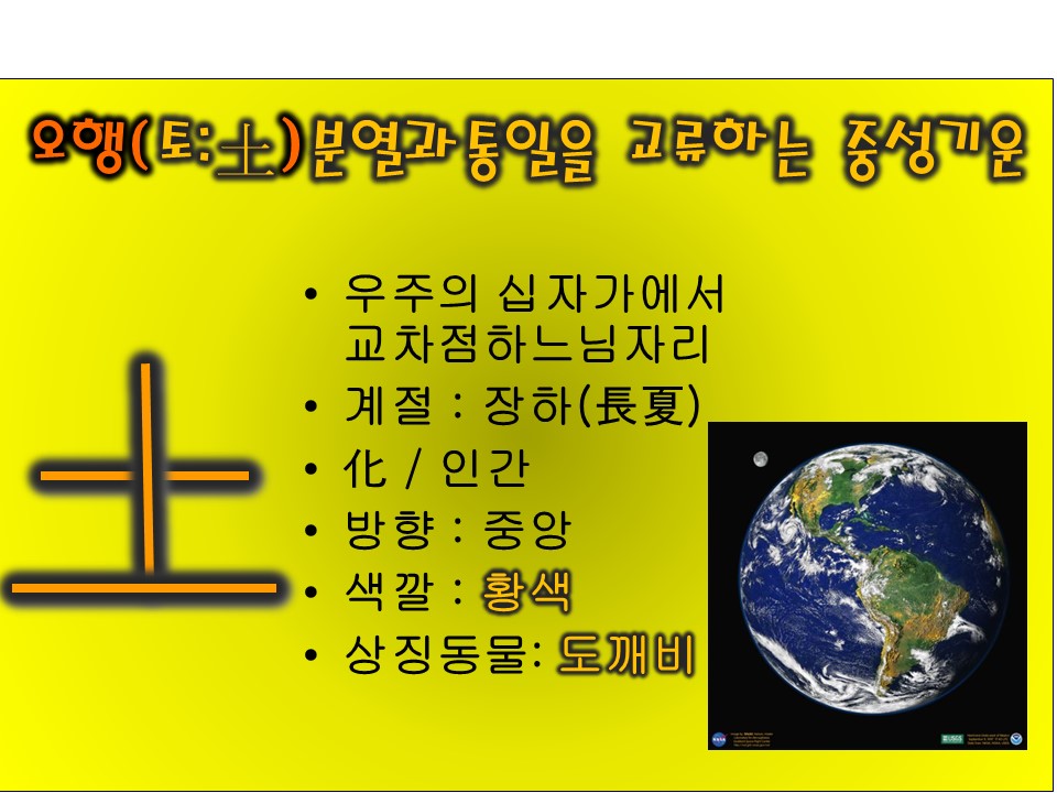 - 지구가 우주에서는 유일하게 토(곤:坤)의 덕성을