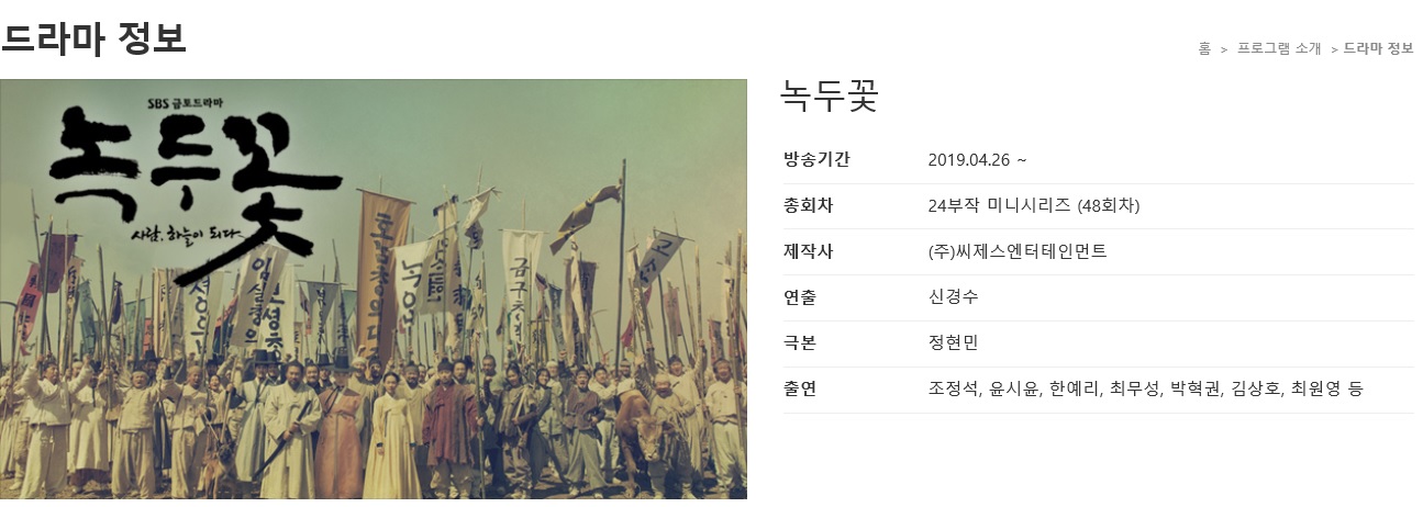 2019년 4월 26일, 지난 금요일부터 SBS의 새로운 드라마 녹두꽃이 방영되기 시작했습니다.