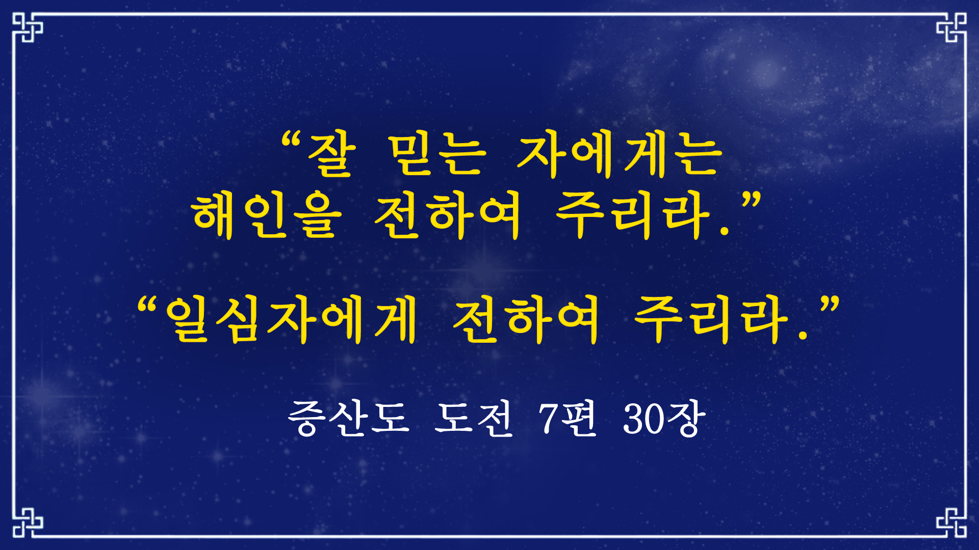 상제님께서는 전 인류가 오직 의통으로 구원받을 수 있음을 말씀해주셨습니다.