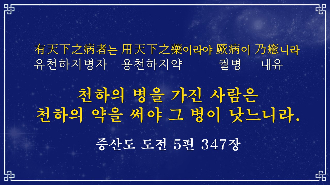 그때는 오직 상제님이 전해주신 구원의 법방으로써만 병겁에서 살아남을 수 있습니다.