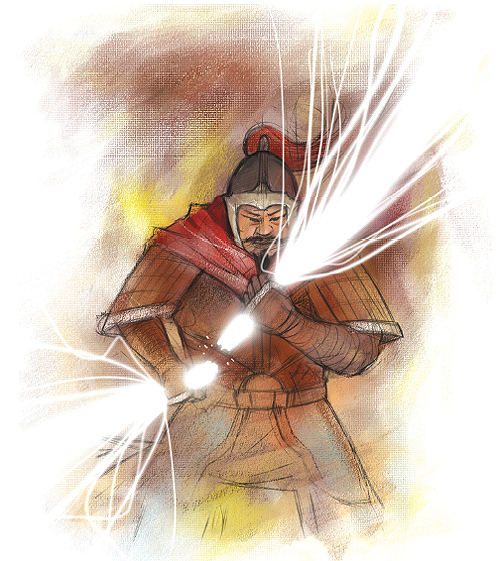 순간 창창하던 밤하늘이 칠흑같이 어두워지더니 잠시 후 해처럼 밝은 불덩이가 나타나 번쩍번쩍