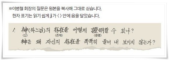 우리나라 최고 재벌기업인 삼성가의 이병철 회장 역시 죽음을 마주하기 한 달 전에 “하느님이 과연 존재하는가?” 질문을 했다는 거죠.