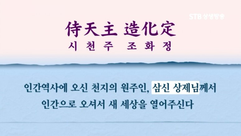상제님께서는 최수운 대신사에게 시천주 주문을 내려 주시고 “수운이 성경신이 지극하므로 내가 천강서를 내려 대도를 열게 하였다”고 밝혀 주셨습니다. 이것이 바로 우주사의 새로운 장을 열어주신 상제님과 직접 대화했던 유명한 ‘천상문답 사건’ 입니다.