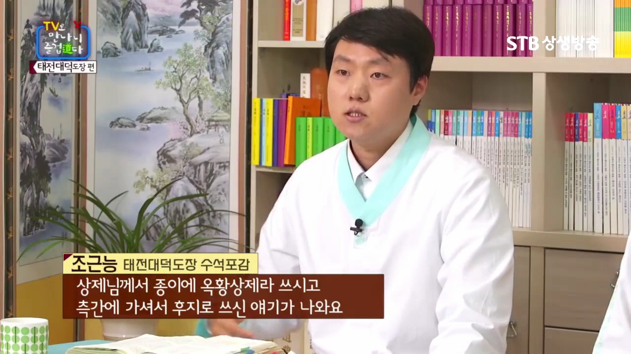 사회자: 갓을 쓰고 두루마기를 입으신 분은 증산 상제님이시고, 그 옆의 다른 옥황상제님이 있다고 하셨는데, 수석포감님! 그 다른 분은 누구신가요?