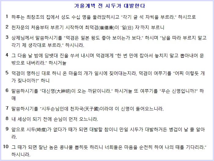 천연두(시두)를 극복하는 태을주 수행을 배워보고 싶으신 분은