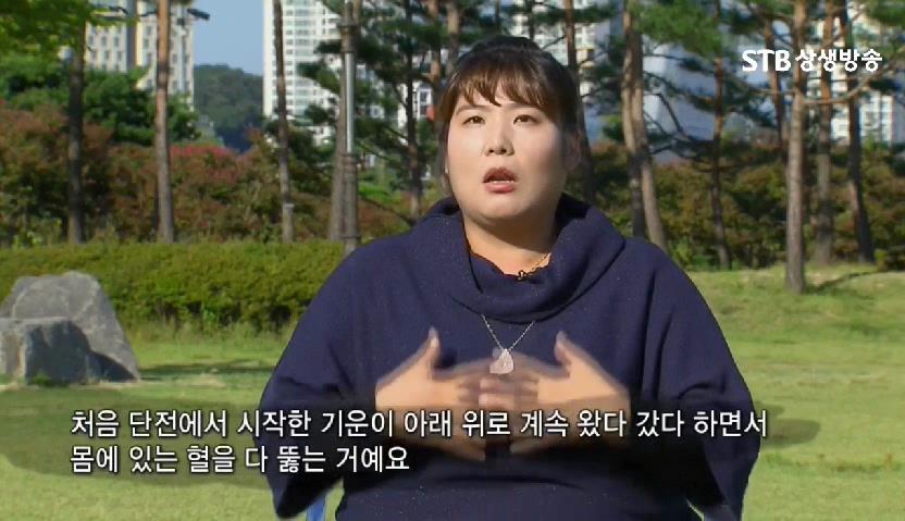 처음에는 '이게 잘못된건가.' 그런 생각도 했는데요. 잘못된 거였으면 다른 일이 있었겠죠. 그러고 나서 몸이 너무 시원하고 상쾌하고 날아갈듯한 느낌이 들었어요. "