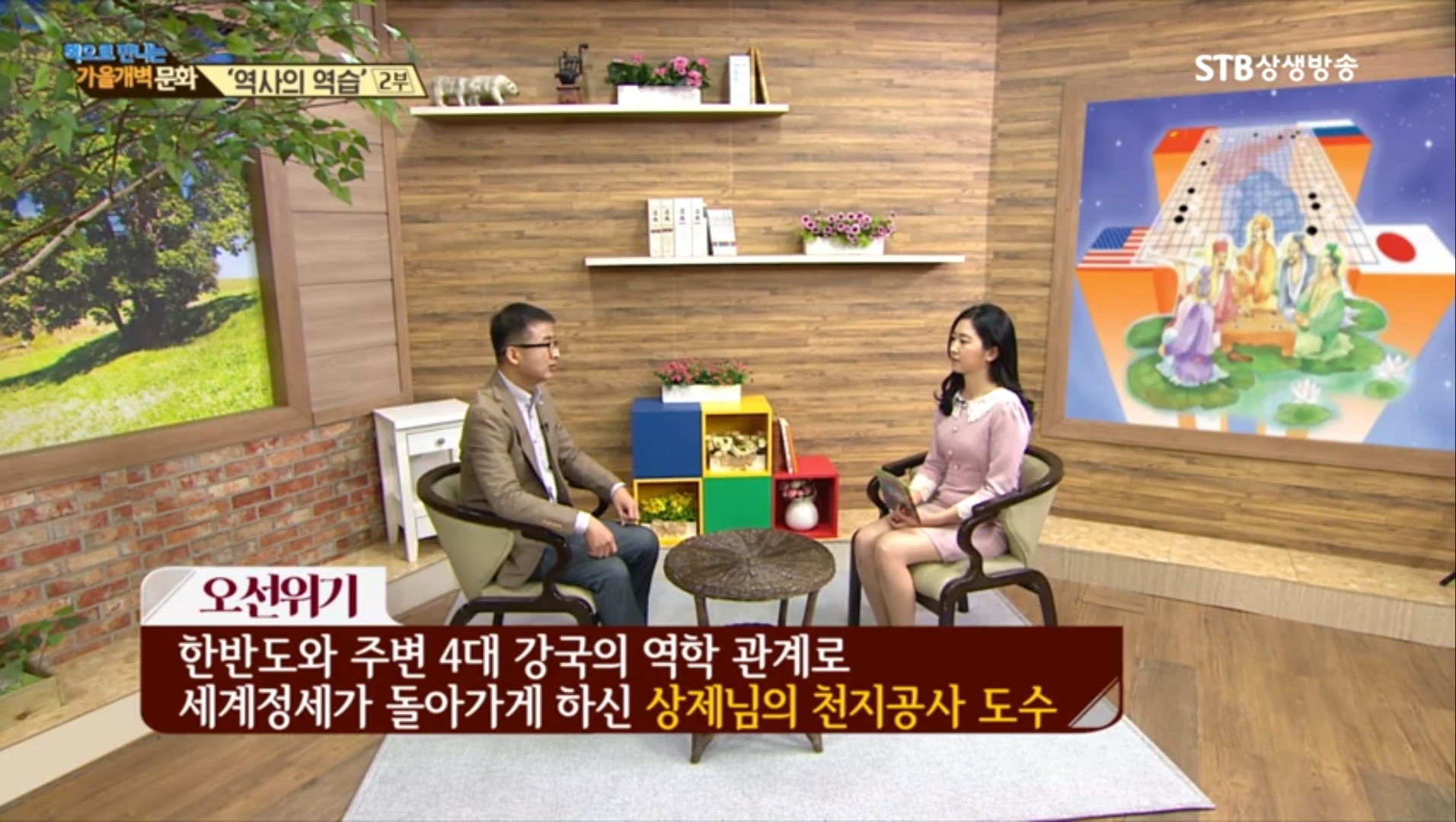 사회자: 지금까지의 역사의 역사의 역습에 대해서 알아보았는데요. 우리는 지금 대변혁의 폭풍 한가운데 있습니다. 상제님께서는 천하의 대세를 아는 자에게는 살 기운이 있다고 말씀하셨습니다. 지구촌의 대세가 어떻게 흘러가는지 알고 이를 대처해야 한다는 것인데요. 역사의 역습을 통해서 현재 동북아의 상황과 이를 극복할 지혜를 함께 살펴보는 시간이 되었습니다.