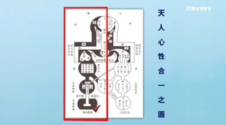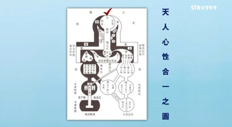 고려 말, 조선 초기의 학자 권근 선생이 <천인심성합일지도天人心性合一之圖>라는 그림을 그렸습니다. 얼른 보면 사람 같죠? 한국사람이 아니면 이런 그림은 상상도 못할 겁니다.