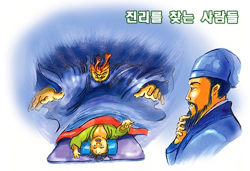 저는 그 소리에 깜짝 놀라 일어나 아이 얼굴을 살펴봤습니다. 아이는 평화롭게 자고 있었습니다. 이상하다 싶어서 아이의 심장에 손을 대고 태을주를 읽었습니다. 그랬더니 어떤 여자 신명과 남자 신명이 얽혀서 싸우고 있는 게 보였습니다. 여자 신명은 척신으로 보였고, 남자 신명은 아이의 심장을 지키는 신명 같았습니다.
