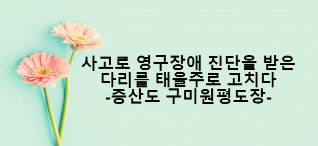 7년 전 불의의 사고로 다리에 '영구장애'라는 진단을 받게 되었습니다. 괴로워하던 저는 투숙하고 있던 모텔의 주인인 권00 도생님의 권유로 증산도의 가르침을 접하게 되었습니다.