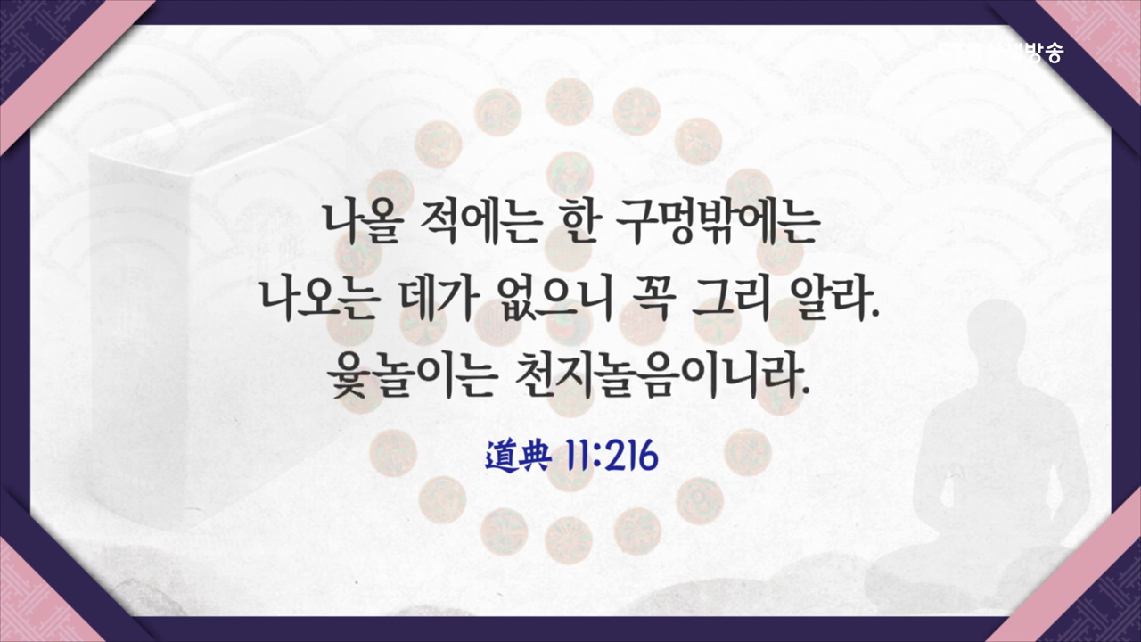 오늘은 지난번 병란개벽문화 북콘서트에서 증산도의 지도자이신 안경전 종도사님께서 해주신 강의 한 토막을 소개해 보도록 하겠습니다.
