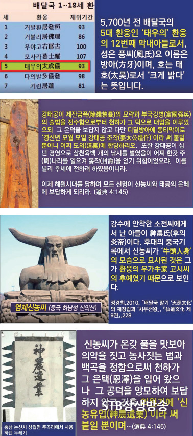 마땅히 선천 문명의 조종祖宗은 태호 복희씨인데 웬일로 도 닦는 자들이 허다히 부처 타령들이냐! (증산도 도전道典 5편 282장 3절)