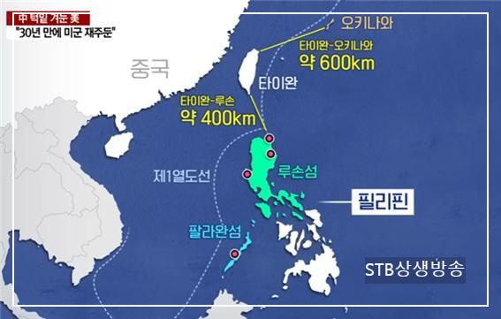 뿐만 아니라, 미국은 지난 2월 2일 필리핀 정부와 협의를 통해 해군과 공군 기지로 활용할 수 있는 군사기지 4곳을 새로 확보했다. 이들 기지들은 대만과 비교적 가까워 대만에서 전쟁이 일어났을 때 미 해군과 공군 전력이 투사가 용이한 루손섬 북부 카가얀주와 그리고 중국과 필리핀 간 해양영토분쟁 중인 스프래틀리군도(중국명: 난샤군도)를 마주한 팔라완 섬 등이다.