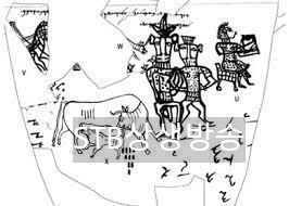 야훼와 아쉐라 여신의 모습이 그려진 토기파편의 그림